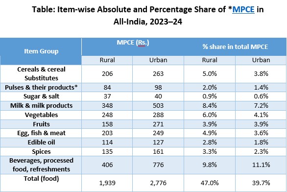 Source: Household Consumption Expenditure Survey (HCES) 2023-24; Ministry of Statistics & Programme Implementation (MoSPI); (*MPCE- Monthly Per Capita Consumption Expenditure)