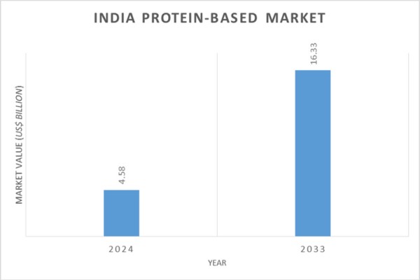 In 2024, the market for protein-based products in India stood at ₹38,247 crore (US$ 4.58 billion). According to the India Protein-Based Product Market Report 2025-2033, by Research and Markets, the market is expected to expand rapidly, reaching ₹1,36,327.6 crore (US$16.33 billion) by 2033, with a strong compound annual growth rate (CAGR) of 15.17% projected for the period 2025 to 2033.